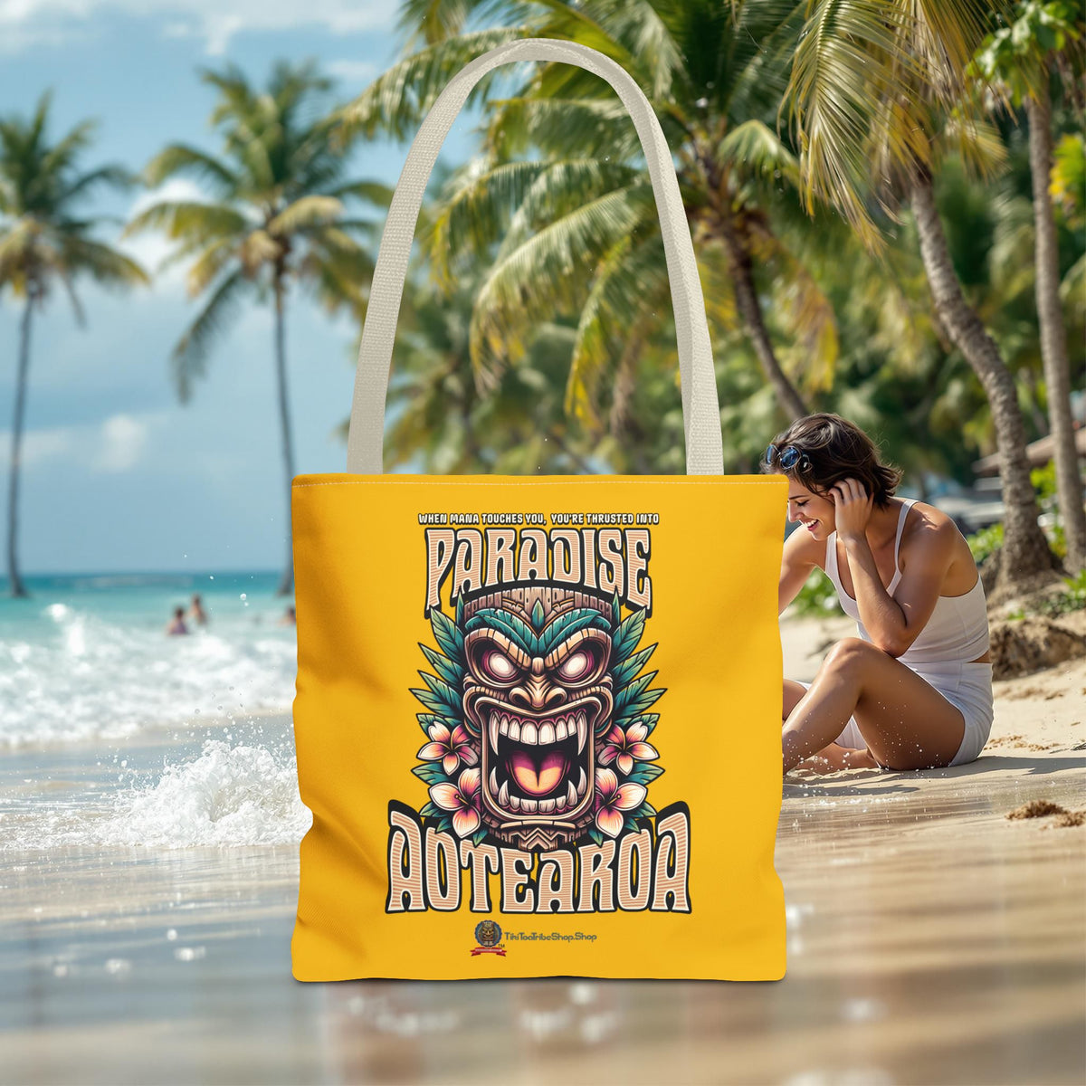 Plongez dans l'esprit du Pacifique avec notre Tote Bag 'Paradise Aotearoa', une célébration vibrante de la culture māori et des paysages époustouflants de la Nouvelle-Zélande.