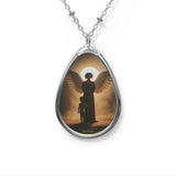 • Un pendentif inspirĂ© de la foi, reprĂ©sentant un ange protecteur guidant doucement un petit garçon sur le sentier de la vie.