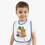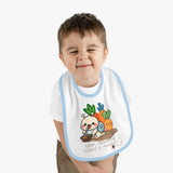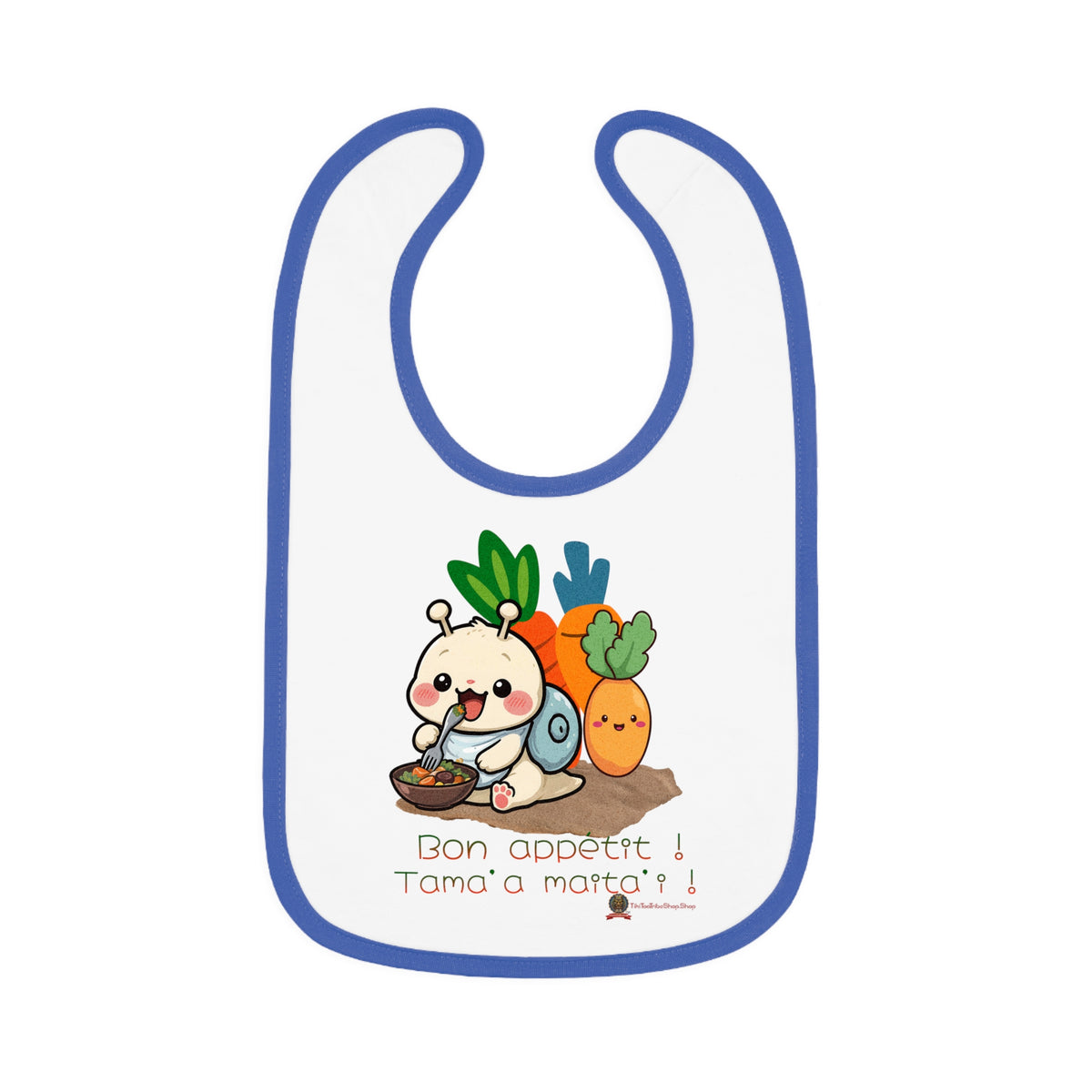 Ce bavoir est disponible dans une large gamme de couleurs pour les bordures : Bleu Roi, Rouge, Rose et Bleu Clair, permettant de créer des bavoirs uniques et originaux.