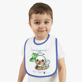Ce bavoir est disponible dans une large gamme de couleurs pour les bordures : Bleu Roi, Rouge, Rose et Bleu Clair, permettant de créer des bavoirs uniques et originaux.