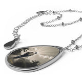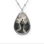 - Le pendentif est suspendu à une chaîne en métal argenté, fabriquée en alliage de zinc, ajoutant une touche classique.