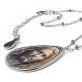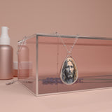- Le pendentif est suspendu à une chaîne en métal argenté, fabriquée en alliage de zinc, ajoutant une touche classique.