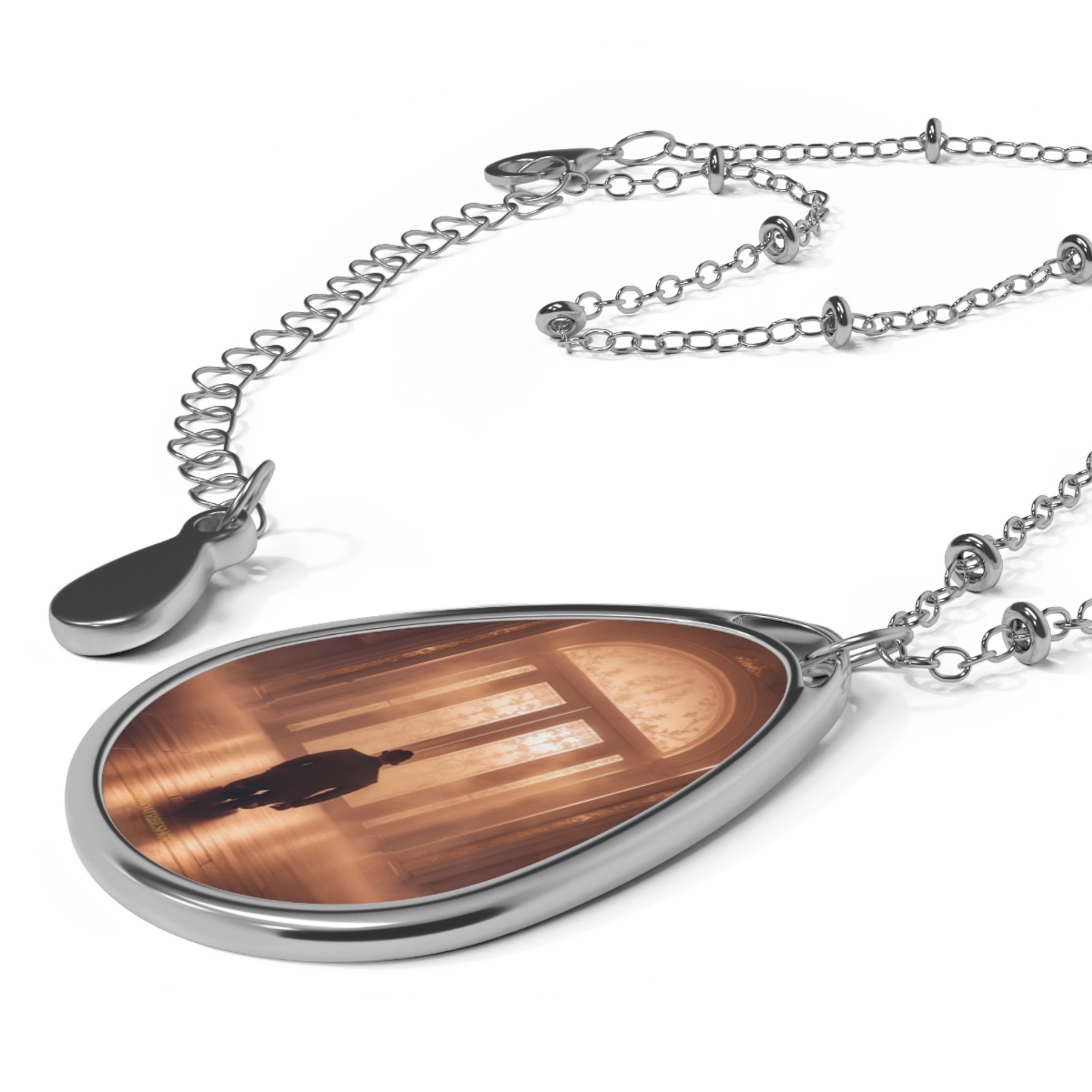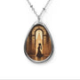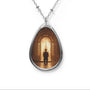 Dans la symbolique spirituelle, les portes majestueuses reprĂ©sentent souvent le seuil entre le monde matĂ©riel et le monde divin. Lorsqu’une lumiĂšre douce les traverse, cela exprime la prĂ©sence d’une vĂ©ritĂ© transcendante Ă  dĂ©couvrir. La posture agenouillĂ©e, quant Ă  elle, est universelle dans toutes les traditions : elle reflĂšte l’humilitĂ© devant l’invisible, mais aussi la dignitĂ© de celui qui cherche. Ce pendentif ne raconte pas seulement une scĂšne, il Ă©voque le mystĂšre de l’ñme en marche vers la lumiĂšre, un cheminement que chacun peut reconnaĂźtre en soi.
