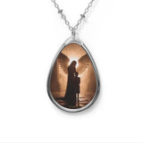 • Un pendentif inspirĂ© de la foi, reprĂ©sentant un ange protecteur guidant doucement un petit garçon sur le sentier de la vie.