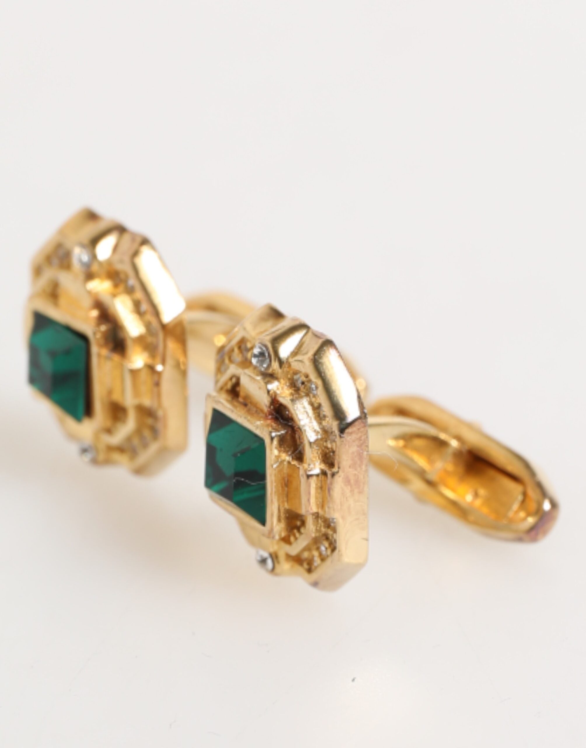 DOLCE & GABBANA Boutons de Manchette de Luxe Argent Sterling - Cristal Vert