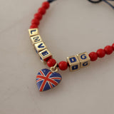 DOLCE & GABBANA : Bracelet "LOVE DG London" Perles Rouges et Cœur Union Jack - Style Urbain Élégant
