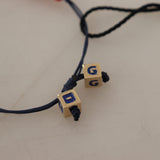 • Le bracelet est ajustable grâce à son cordon noir coulissant et ses perles métalliques aux extrémités, permettant un ajustement parfait à différents poignets.