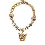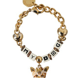 DOLCE & GABBANA : Bracelet Chaîne Dorée "MY DOG" avec Charms Cœurs et Visage de Chien Émaillé