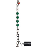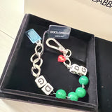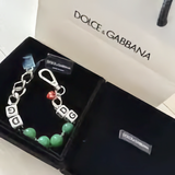 DOLCE & GABBANA : Bracelet Chaîne Argentée, Dés "DG" et Perles Vertes - Chic