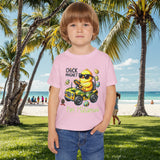Le T-shirt "Pipi Mātāmua" est le choix parfait pour les parents qui souhaitent que leur enfant se démarque avec humour et originalité. Son design unique de poussin conduisant une jeep avec des lunettes de soleil est à la fois amusant et plein de caractère. Ce T-shirt est non seulement confortable pour le jeu et l'aventure, mais il est aussi un vêtement qui reflète l'esprit joyeux et confiant de votre enfant. Il deviendra rapidement sa pièce préférée et un sujet de conversation pour tous ceux qui le verront.
