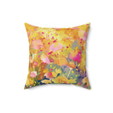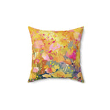 • Coussin Déco Carré à Housse Imprimée : Son motif explosif de fleurs abstraites dans des nuances éclatantes de jaune, orange, rose et fuchsia crée une symphonie visuelle qui capte le regard et stimule l'imagination.