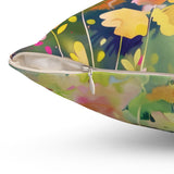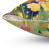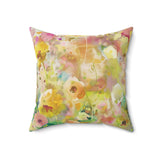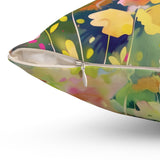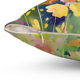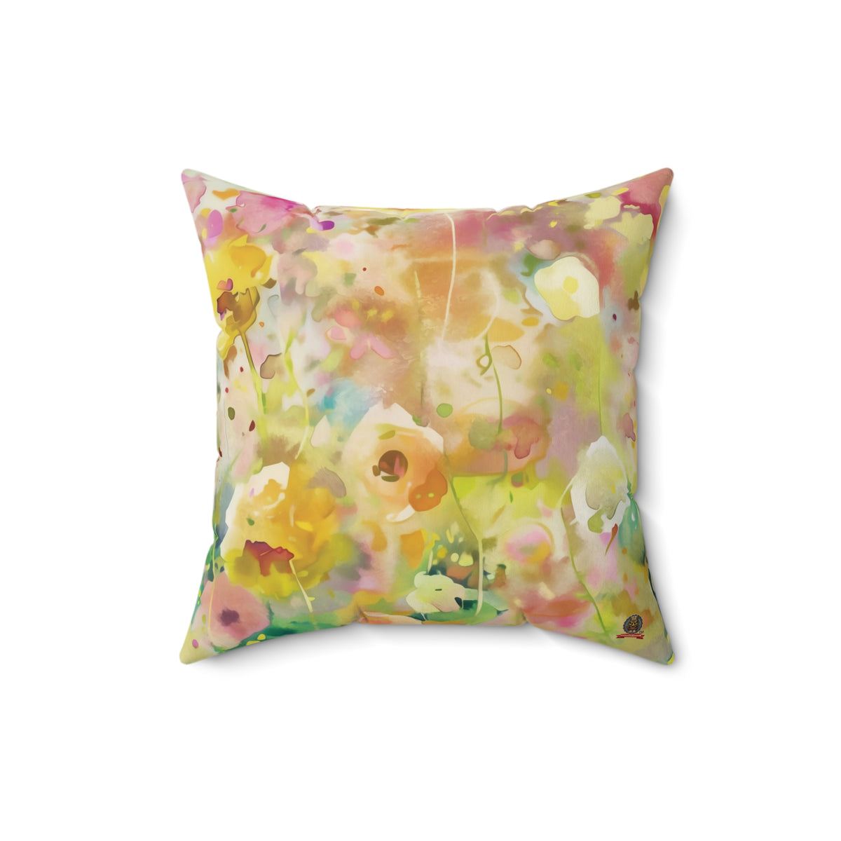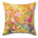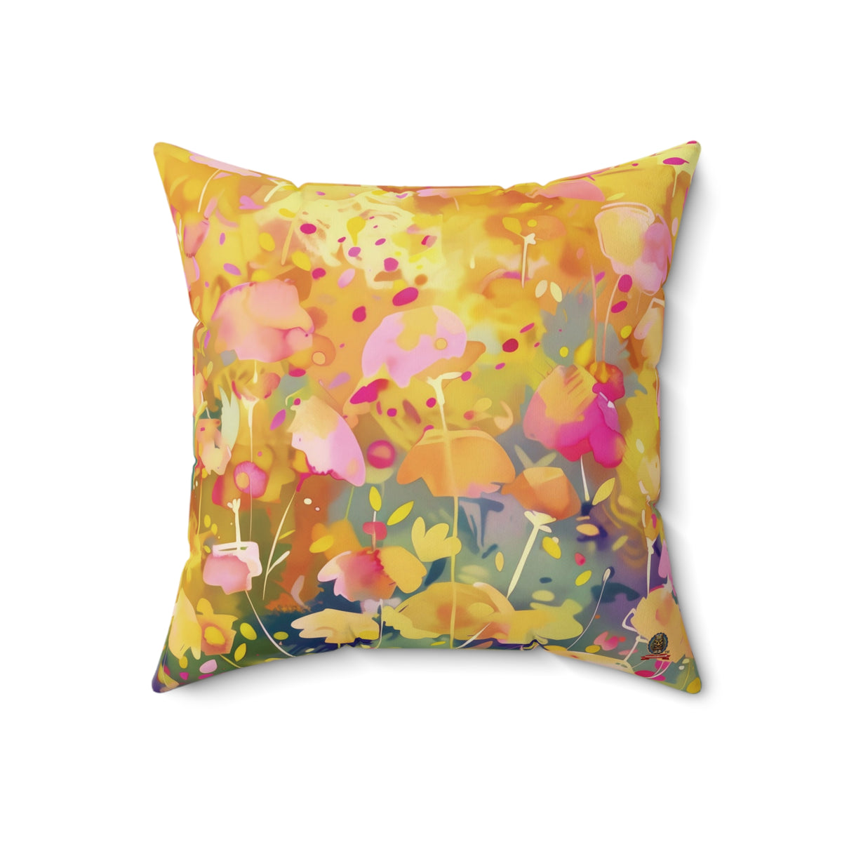 Ce coussin "Fleurs Abstraites" présente un motif vibrant et lumineux de fleurs abstraites dans des teintes de jaune, orange, rose et fuchsia, avec des touches de vert clair. Les formes sont floues et superposées, évoquant une peinture à l'aquarelle ou un champ de fleurs sous le soleil. Le style est très artistique et moderne, avec une prédominance de couleurs chaudes qui irradient de joie. Ce coussin n'est pas qu'un simple objet de décoration ; il est une véritable œuvre d'art qui apporte une explosion de couleurs, de dynamisme et une atmosphère joyeuse et artistique à votre intérieur.