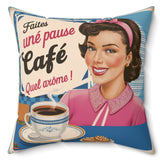Laissez-vous tenter par la douceur de vivre d'autrefois avec ce coussin "Vies Vibrantes : Pause Café & Chocolat" et créez un coin de bonheur chez vous !
