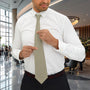 • Léger, fluide et agréable à porter grâce à sa finition satinée. Finition Impeccable : Forme en V, boucle de maintien et étiquette cousue pour un look professionnel.