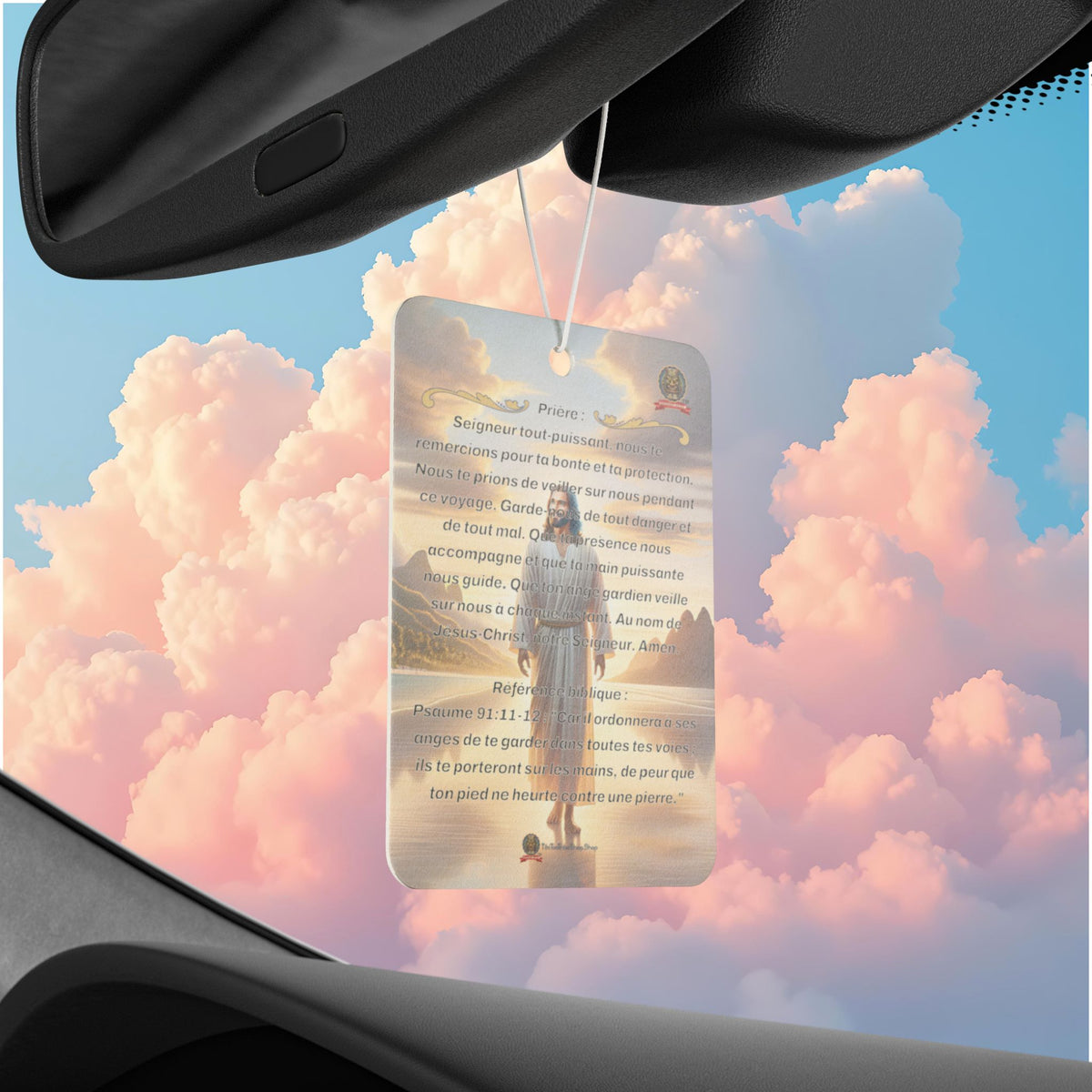 Seigneur tout-puissant, nous te remercions pour ta bonté et ta protection. Nous te prions de veiller sur nous pendant ce voyage. Garde-nous de tout danger et de tout mal. Que ta présence nous accompagne et que ta main puissante nous guide. Que ton ange gardien veille sur nous à chaque instant. Au nom de Jésus-Christ, notre Seigneur. Amen.