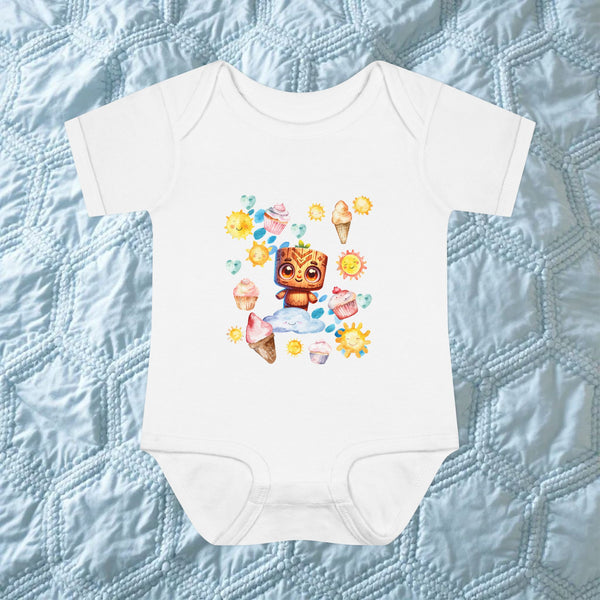 Bienvenue dans la collection "Douceurs des Îles pour Minis Explorateurs", une véritable escapade tropicale pour les tout-petits. Conçus pour les premières fois et les plus doux câlins, nos bodys pour bébé allient confort ultime et praticité. Chaque pièce est confectionnée en coton ou jersey ultra-doux, avec des pressions faciles à manipuler pour un quotidien sans tracas. Laisse-toi séduire par nos motifs originaux de bébés tiki, nos adorables chibis hibiscus et nos charmants animaux marins.