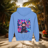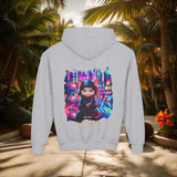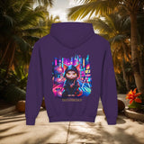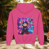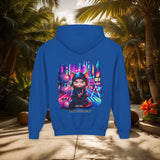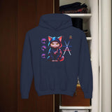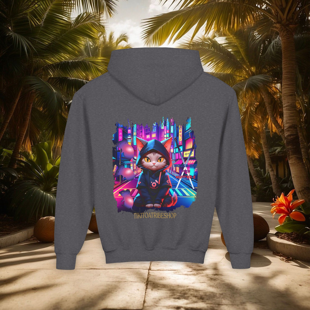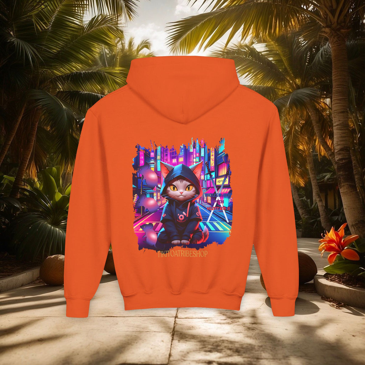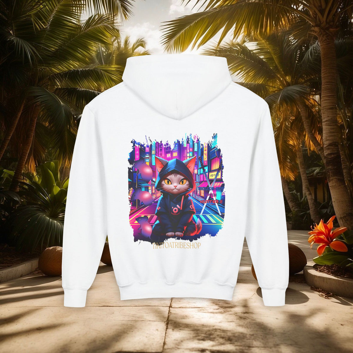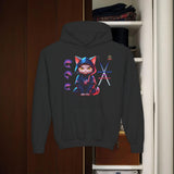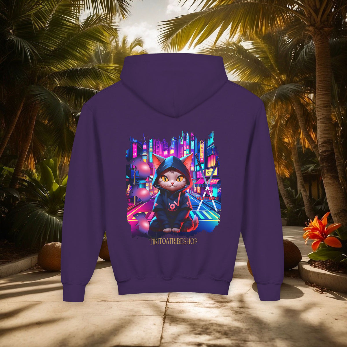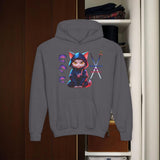 Confectionné avec des matériaux de haute qualité, ce sweat à capuche vous enveloppe d'un confort exceptionnel, idéal pour explorer la ville de jour comme de nuit. Le design vibrant, mettant en scÚne un chat ninja aux yeux perçants dans un décor urbain néon, est une célébration de l'agilité et de la furtivité modernes.