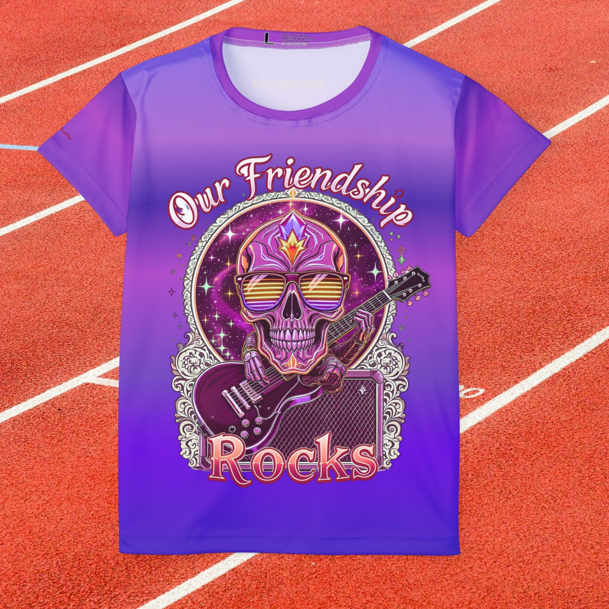 Célébrez l'amitié qui déchire avec notre maillot de sport "Our Friendship Rocks". Ce jersey athleisure est le compagnon idéal pour toutes vos aventures, qu'elles soient sportives ou festives, et pour montrer que votre amitié est solide comme le rock. Conçu pour la performance, ce maillot est fabriqué en 100% polyester anti-humidité pour vous garder au frais et au sec. Son tissu ultra-léger et sa coupe classique vous offrent un confort optimal et une totale liberté de mouvement.
