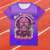 • Design exclusif "Our Friendship Rocks" avec un crâne royal, une guitare et un ampli.