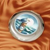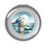 Emportez un symbole de liberté avec notre miroir de poche "L'Espoir Ne Meurt Jamais - Mouette". Cet accessoire enchanteur capture la beauté d'une mouette reposant sur un poteau, un symbole de résilience et d'espoir. Le design, inspiré des vitraux, aux couleurs bleues et grises, évoque un sentiment de calme, de sérénité et d'évasion.