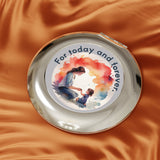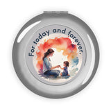 Célébrez l'amour inconditionnel avec notre miroir de poche "For today and forever". Cet accessoire enchanteur met en scène une mère qui enlace tendrement son enfant, un symbole fort de l'amour, de la protection et de la famille. Le design, inspiré des vitraux, aux couleurs douces et à la lumière chatoyante, est une véritable invitation à embrasser le changement et à grandir.