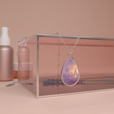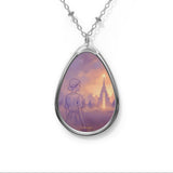 • Ce pendentif représente une silhouette féminine s'éloignant vers un édifice illuminé dans une douce brume matinale ou vespérale.