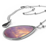 - Le pendentif est suspendu à une chaîne en métal argenté, fabriquée en alliage de zinc, ajoutant une touche classique.