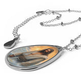 - Le pendentif est suspendu à une chaîne en métal argenté, fabriquée en alliage de zinc, ajoutant une touche classique.