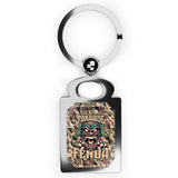 Porte-clés original avec visuel Tiki explosif sur fond Camouflage Woodland / Forestier