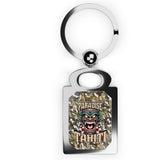 Porte-clés original avec visuel Tiki explosif sur fond camouflage boisé / forestier (DPM).