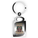 Porte-clés original avec visuel Tiki explosif sur fond gris