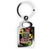 Porte-clés original avec visuel Tiki explosif sur un fond Pop Art.