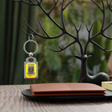Porte-clés original avec visuel Tiki explosif sur fond jaune