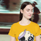 Le design central met en scène un crâne au style décalé, avec des yeux de différentes tailles et un ruban violet portant l'inscription "Till The End My Friend" ("Jusqu'à la fin, mon ami"). Ce crâne, à la fois mignon et légèrement effrayant, exprime un message de loyauté et d'amitié éternelle.