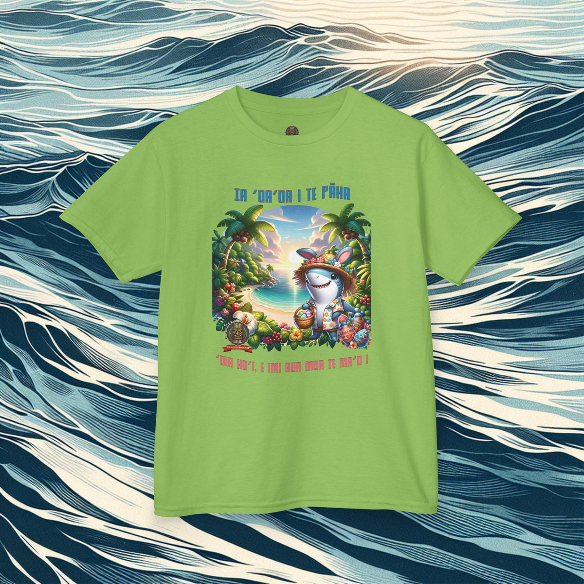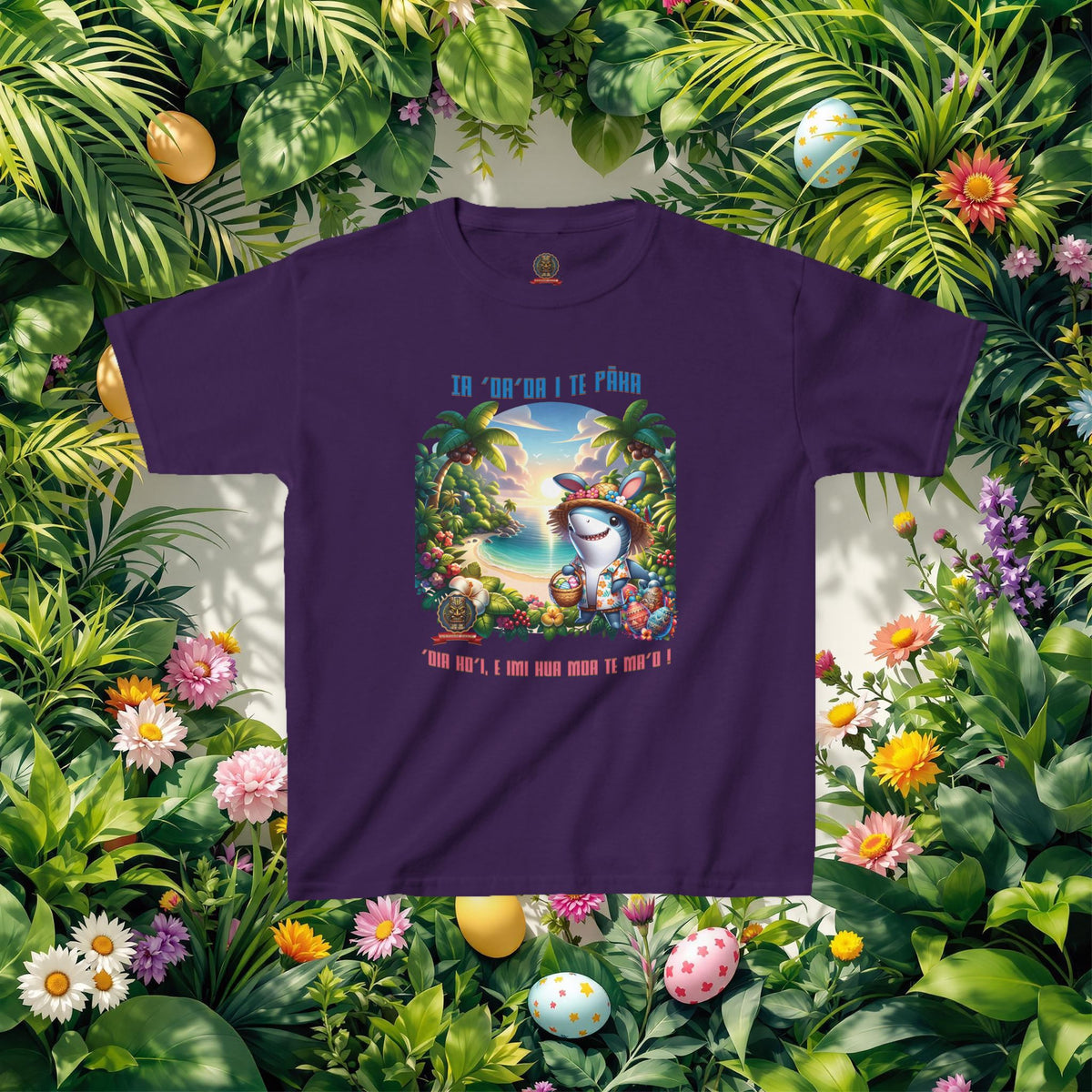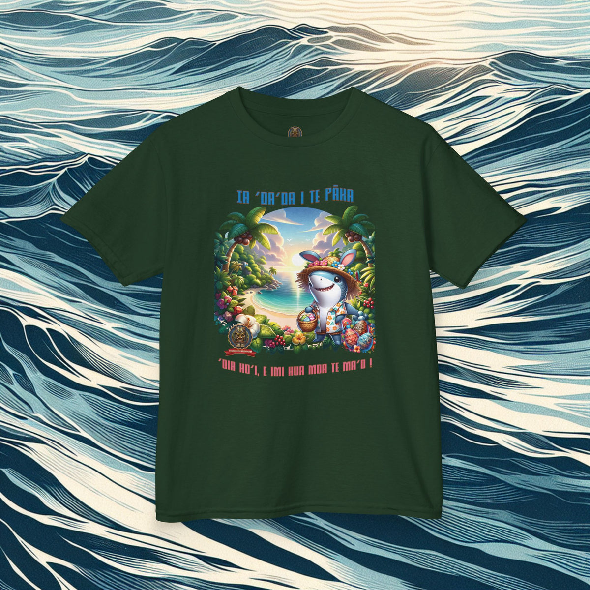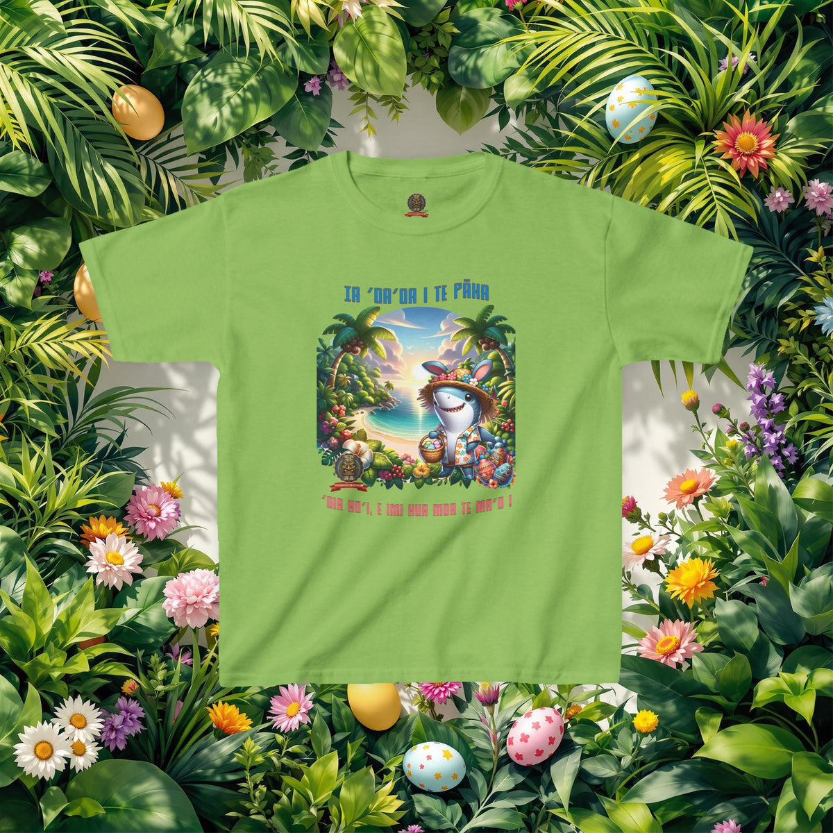 ”‘Ia ‘oa’oa i te Pāka – ‘oia ho’i, e imi hua moa te ma’o !” - (“Joyeuses Pâques en Polynésie – même les requins cherchent des œufs !”).