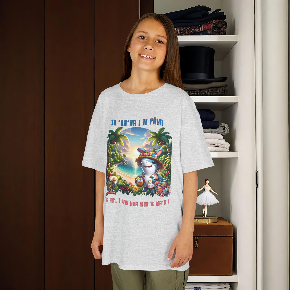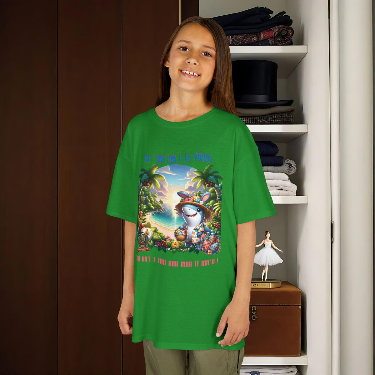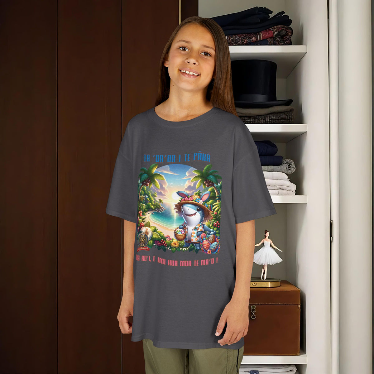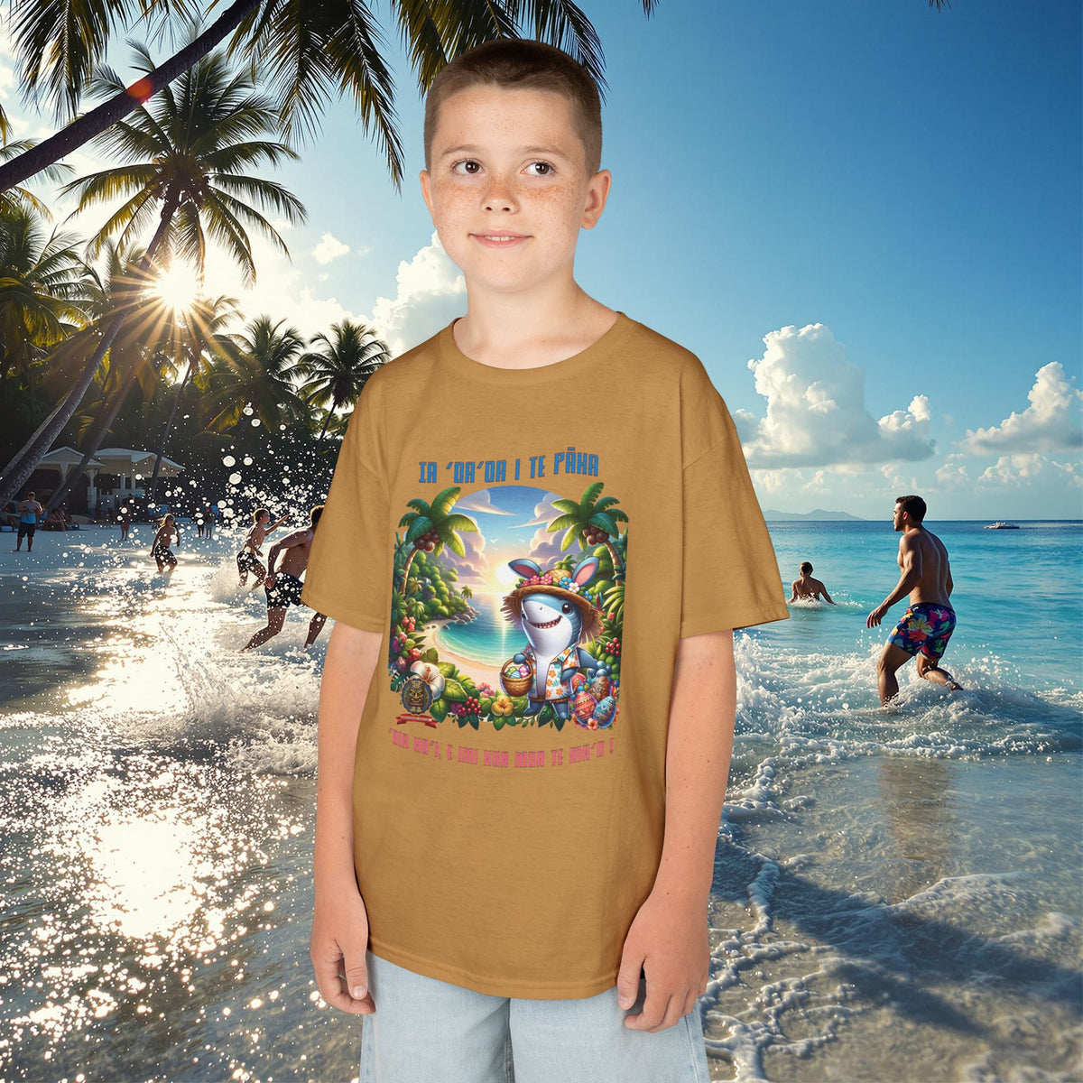 ”‘Ia ‘oa’oa i te Pāka – ‘oia ho’i, e imi hua moa te ma’o !” - (“Joyeuses Pâques en Polynésie – même les requins cherchent des œufs !”).