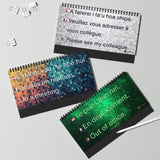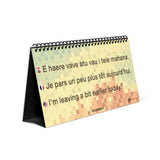 Communication Claire : Messages "Je suis en réunion" ( Réunion, pause, retour… tout est indiqué) en tahitien, français et anglais pour une compréhension universelle.
