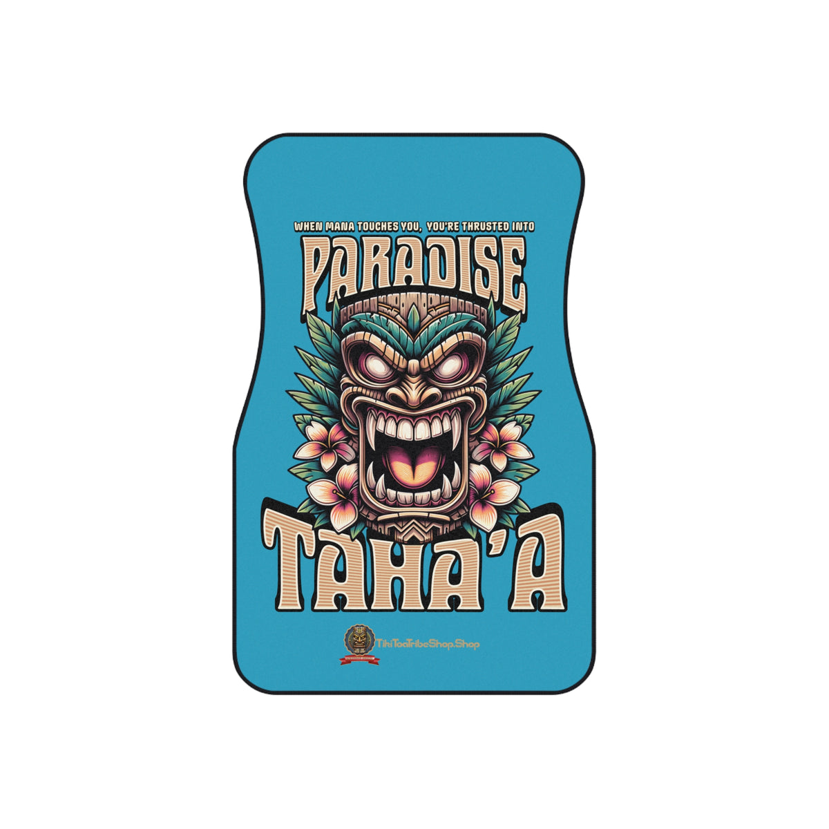 Inscription "Taha’a "en lettres stylisées, rendant hommage à l’île vanille, au parfum envoûtant et aux lagons préservés.