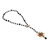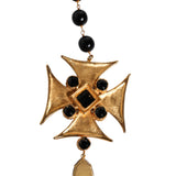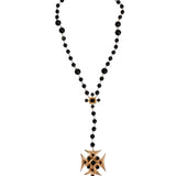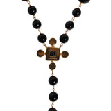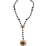 DOLCE & GABBANA COLLIER ROSAIRE en Laiton Doré avec Perles Noires et Pendentif Croix "Croce"