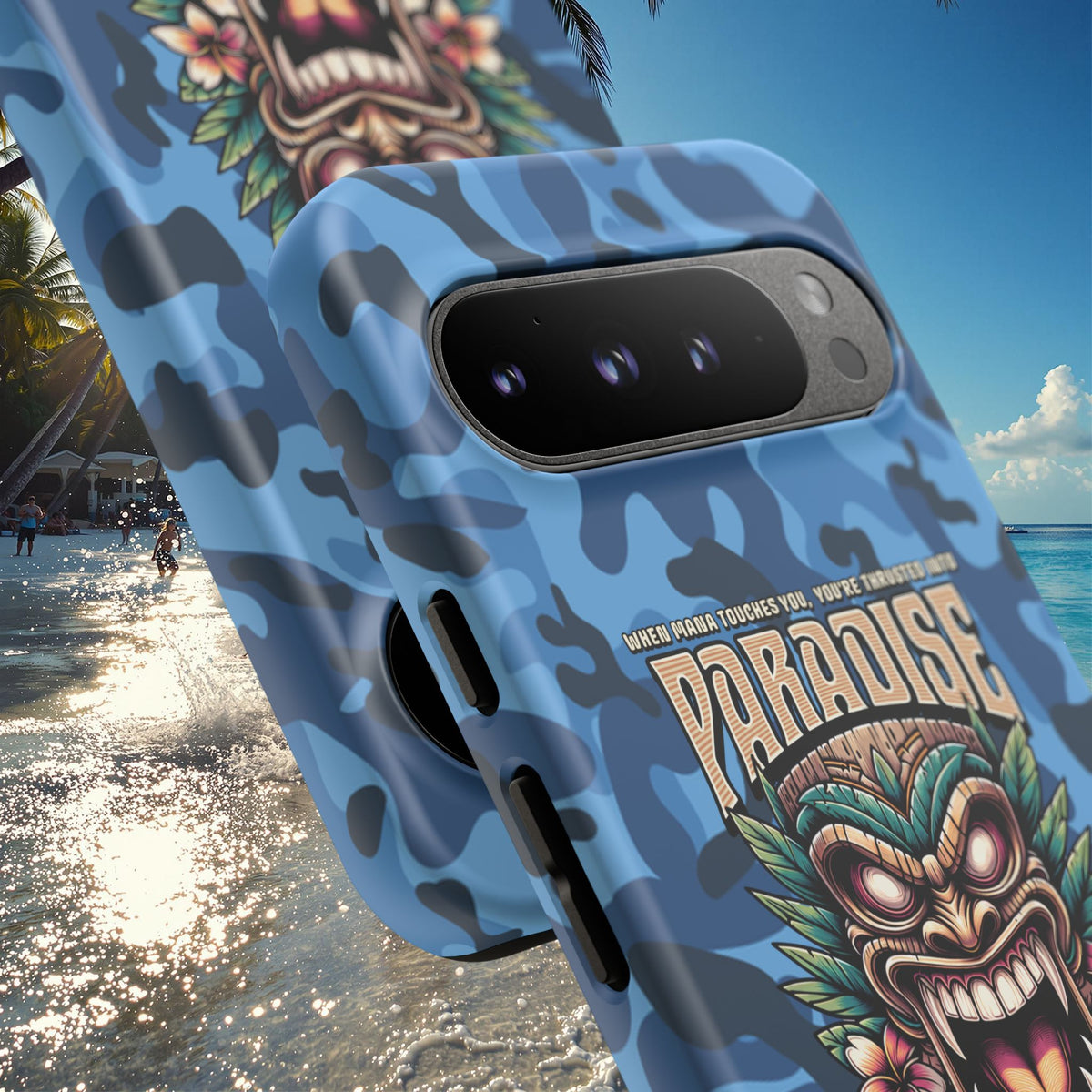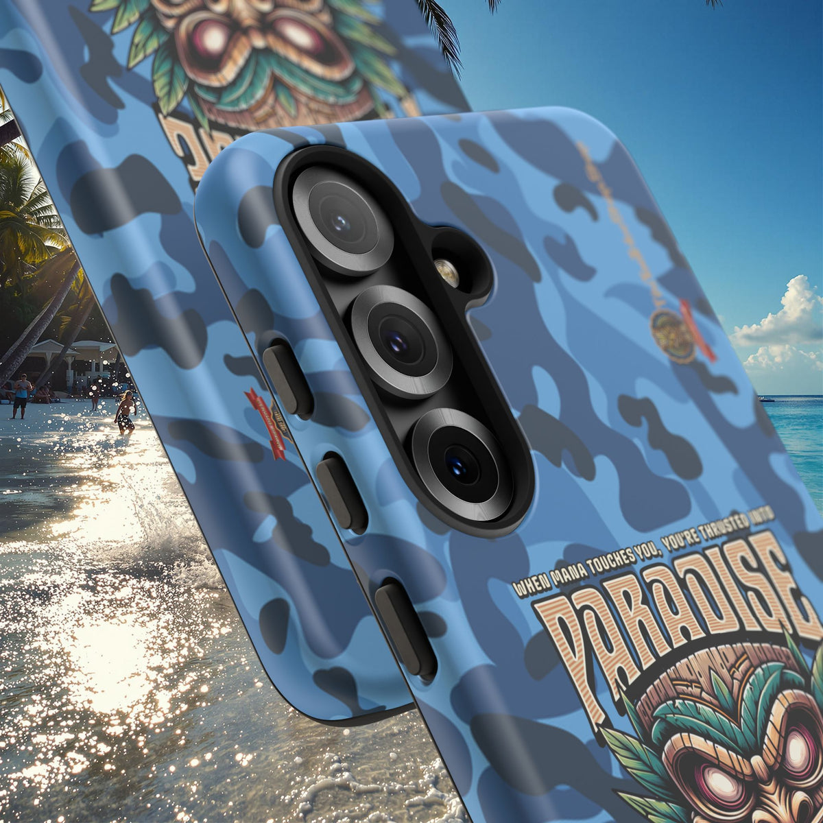 Cette coque antichoc met à l’honneur l’énergie mystique de Ra’iatea à travers un tiki féroce et majestueux, enraciné dans les traditions polynésiennes.