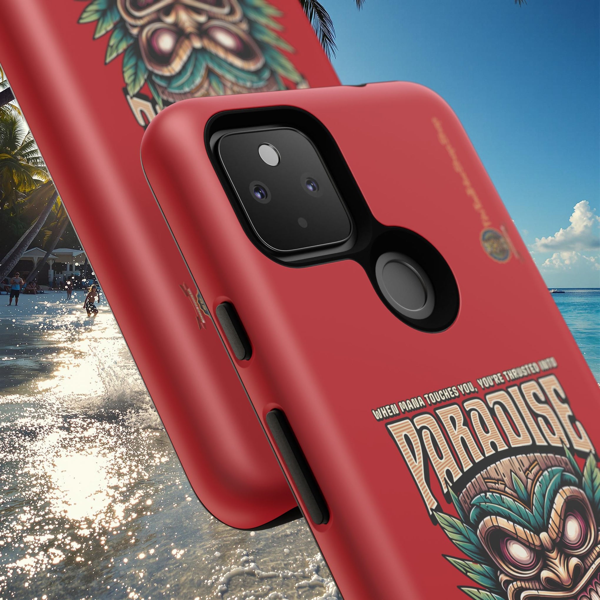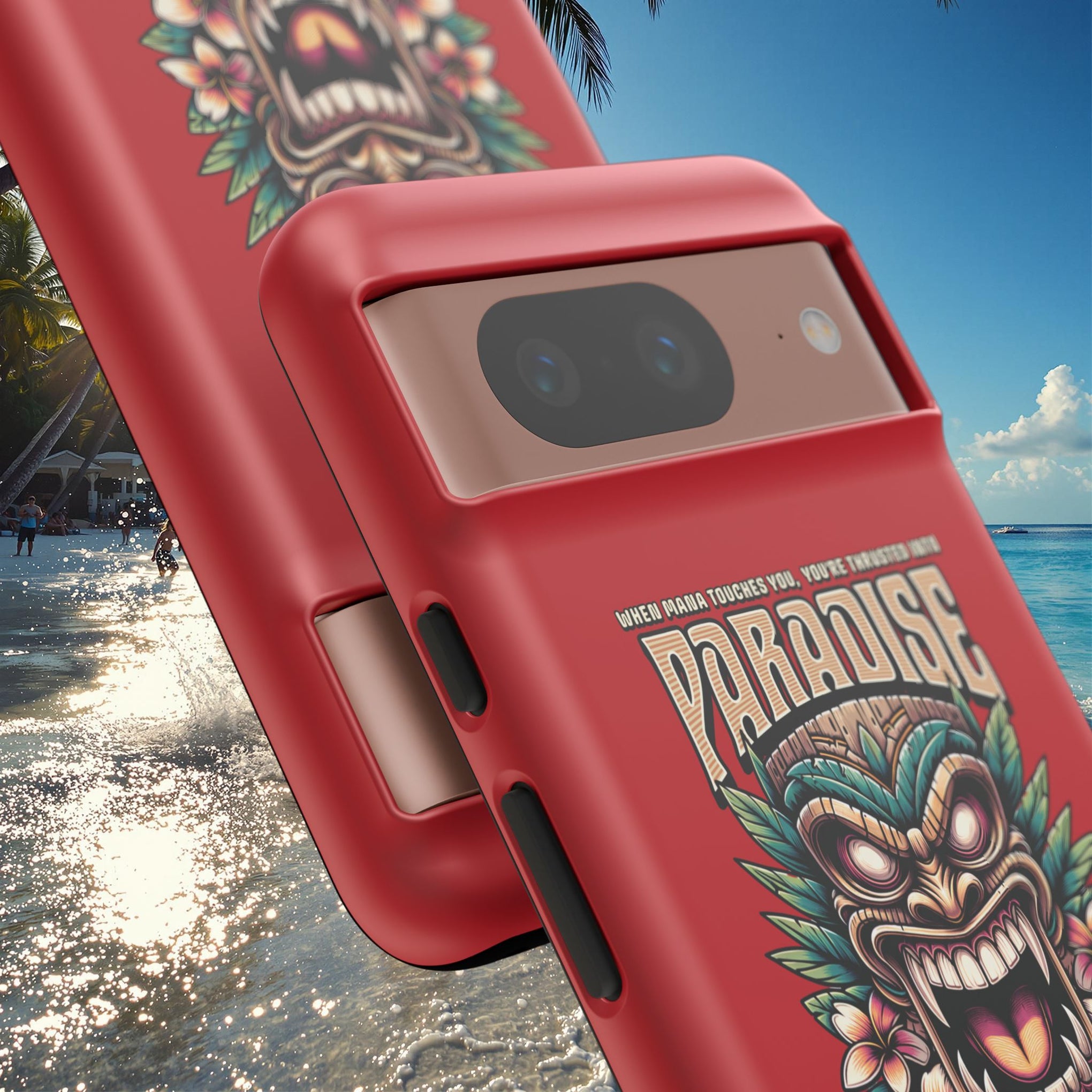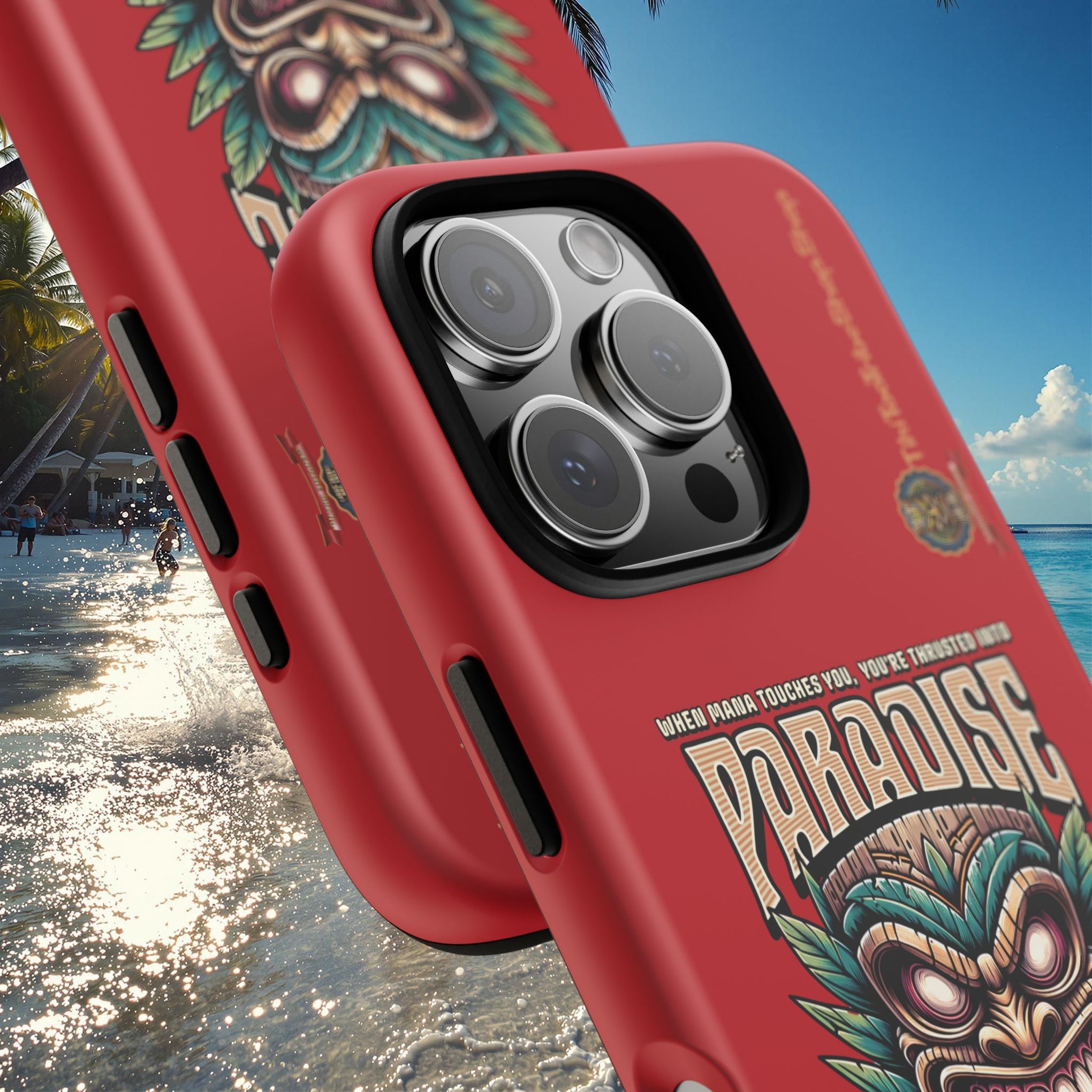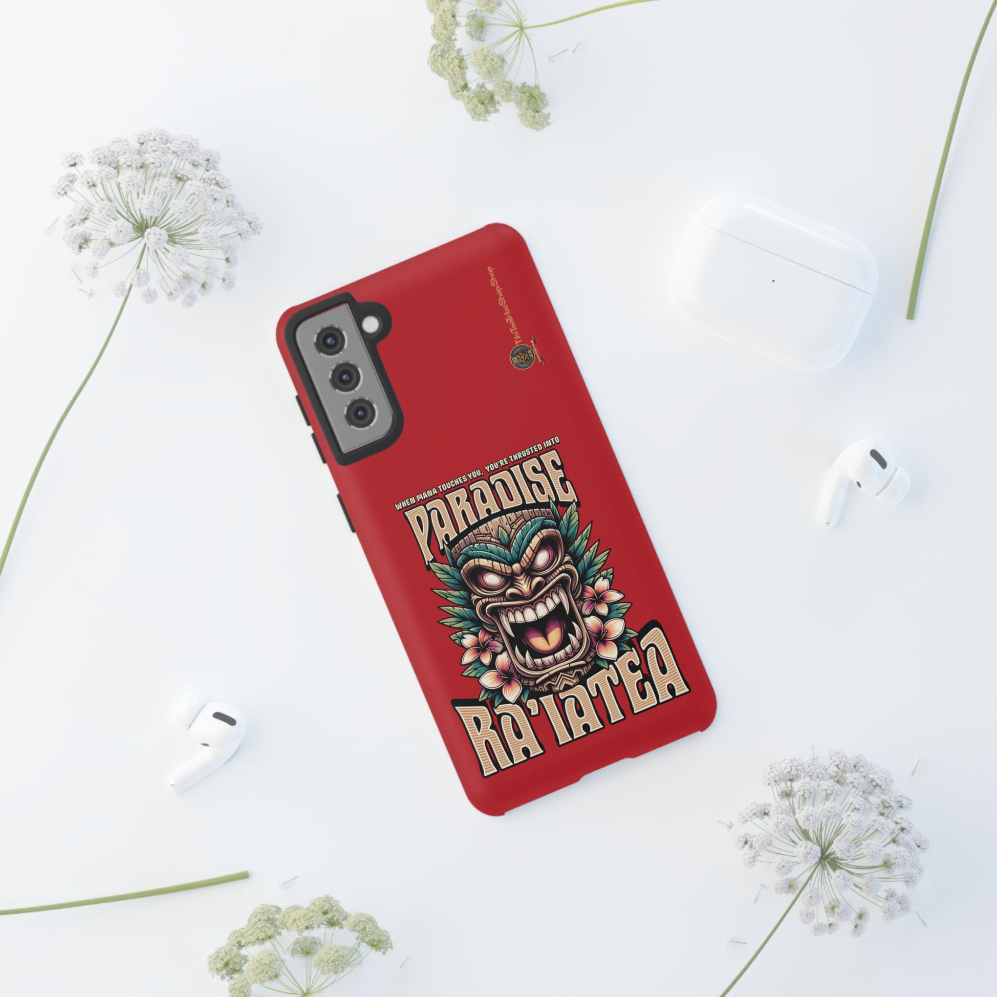 Cette coque antichoc met à l’honneur l’énergie mystique de Ra’iatea à travers un tiki féroce et majestueux, enraciné dans les traditions polynésiennes.