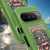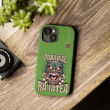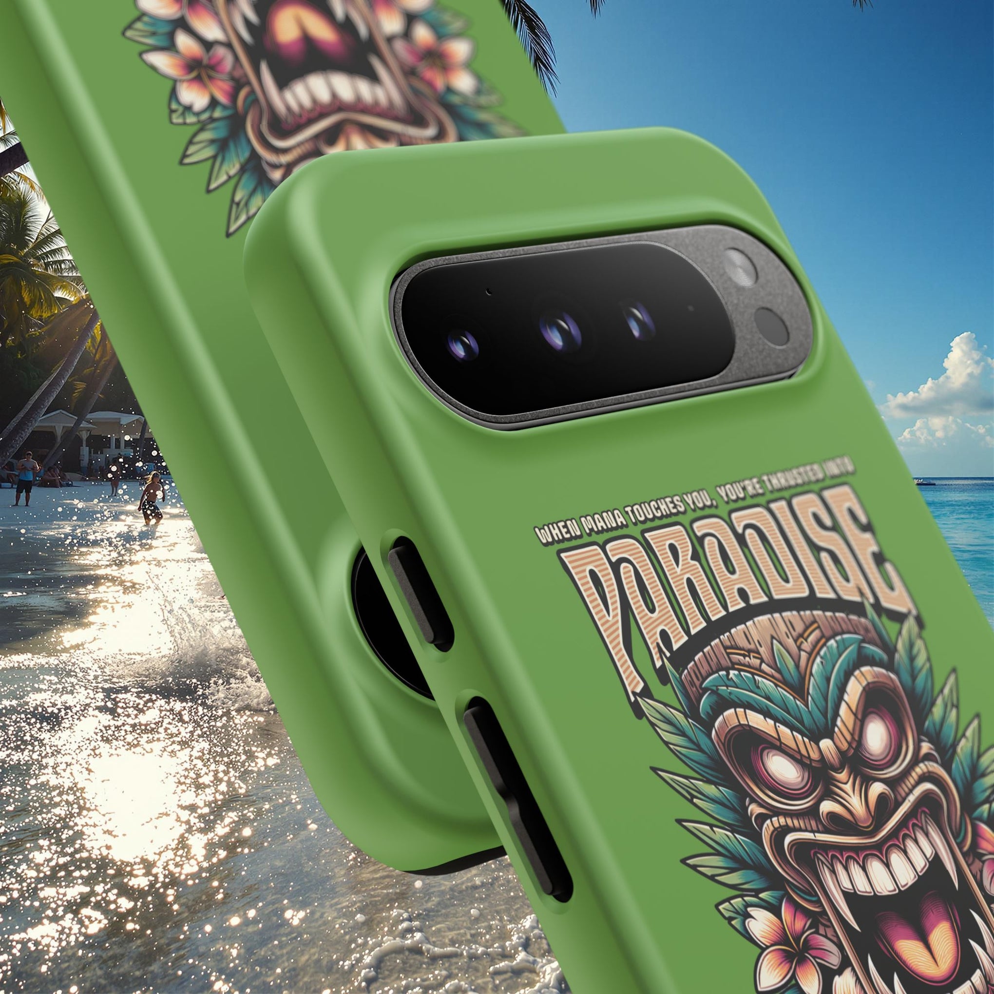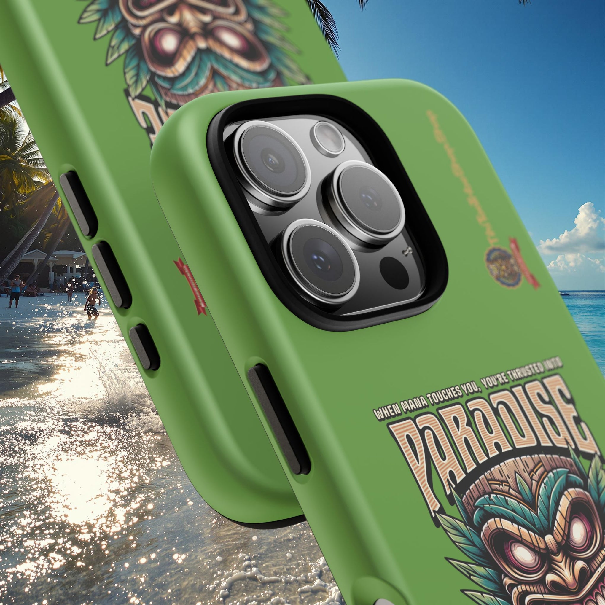 Cette coque antichoc met à l’honneur l’énergie mystique de Ra’iatea à travers un tiki féroce et majestueux, enraciné dans les traditions polynésiennes.