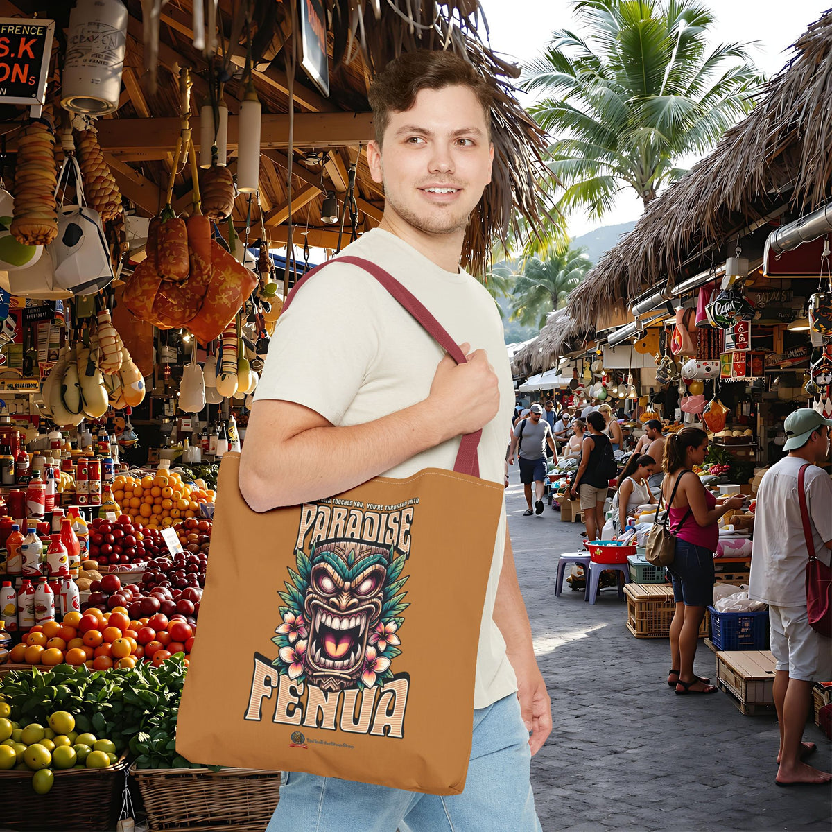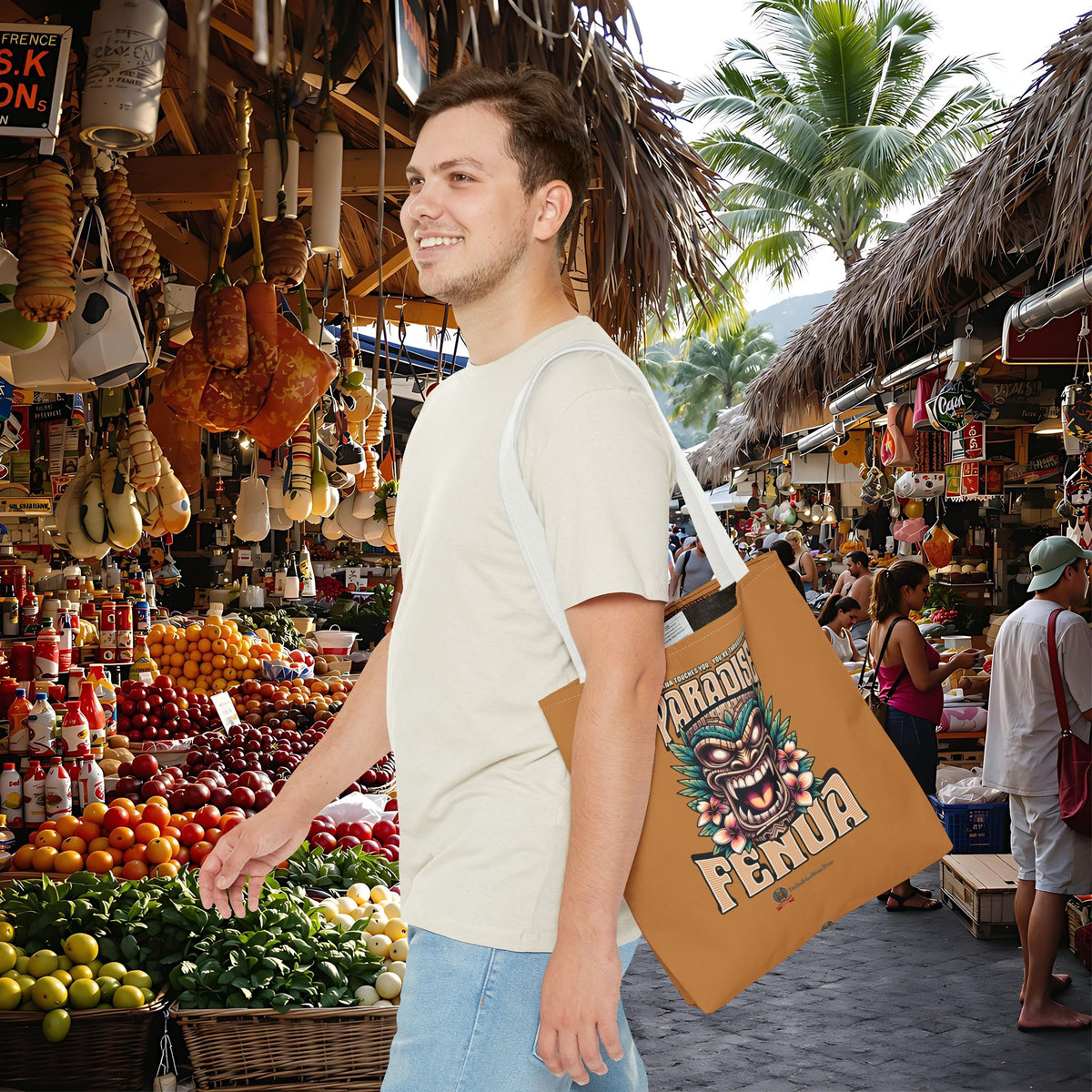 Apportez la puissance et la beauté du Fenua à votre quotidien. Adoptez le Tote Bag 'FENUA PARADISE' de TIKI TOA TRIBE SHOP et connectez-vous au paradis terrestre.