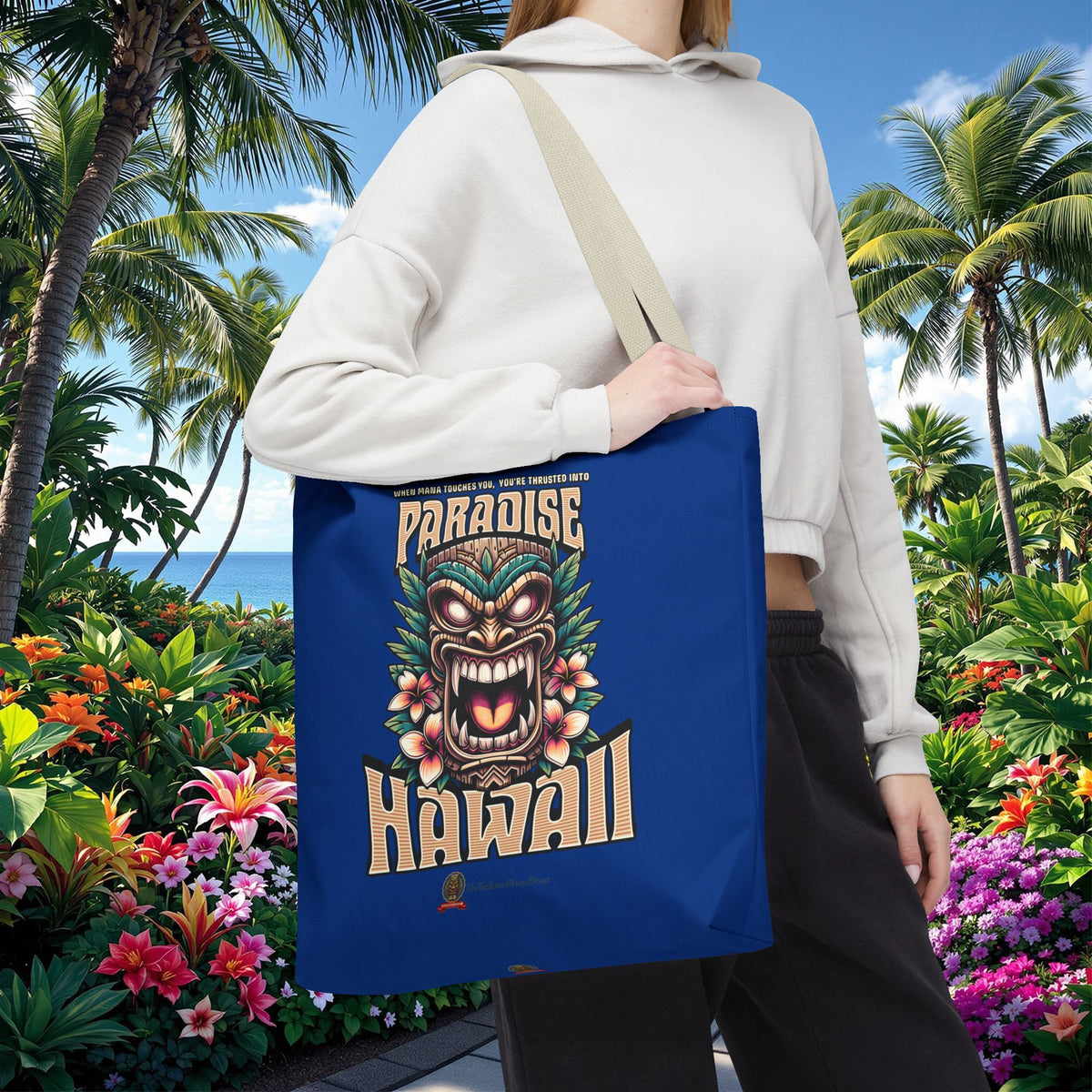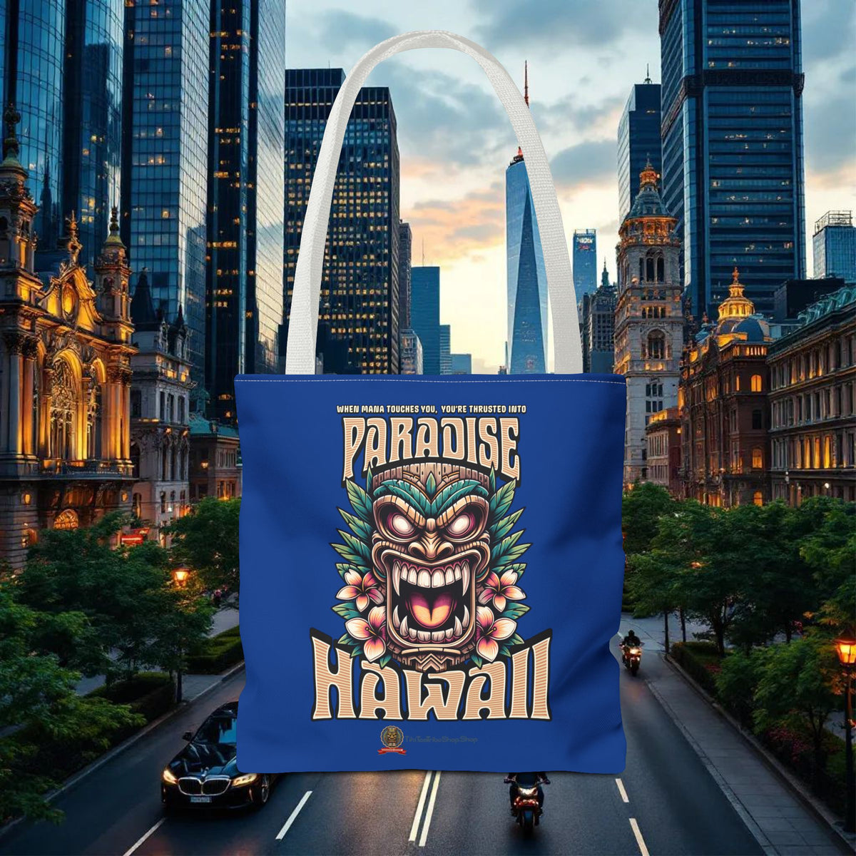 Apportez l'énergie et la beauté d'Hawaii à votre quotidien. Adoptez le Tote Bag 'HAWAII PARADISE' de TIKI TOA TRIBE SHOP et vivez le rêve du Pacifique.