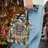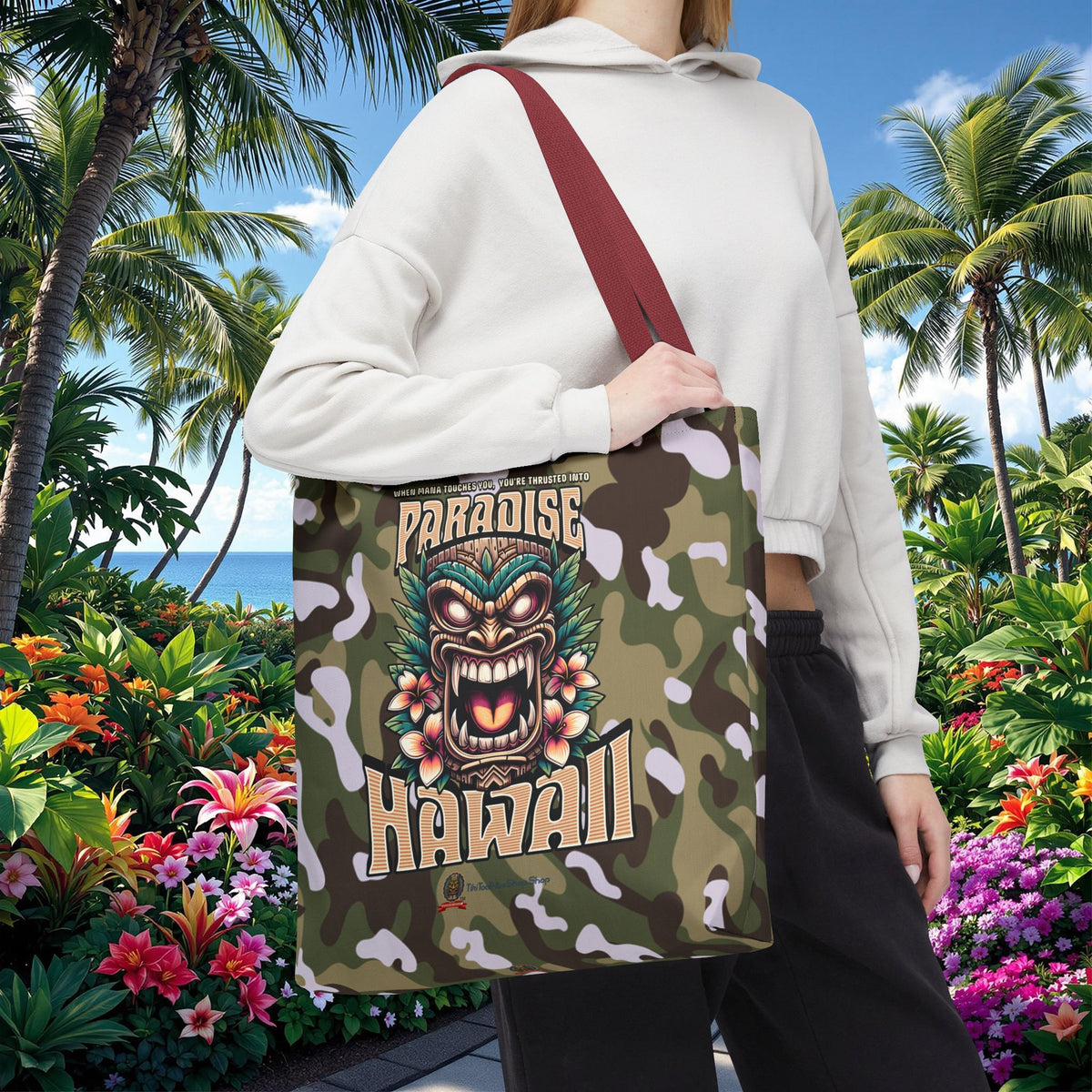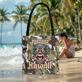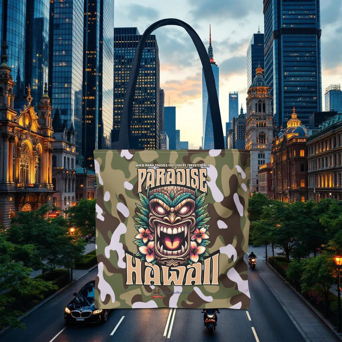 Apportez l'énergie et la beauté d'Hawaii à votre quotidien. Adoptez le Tote Bag 'HAWAII PARADISE' de TIKI TOA TRIBE SHOP et vivez le rêve du Pacifique.