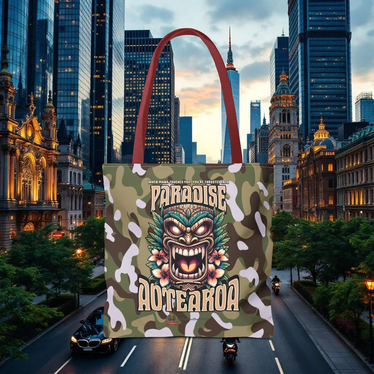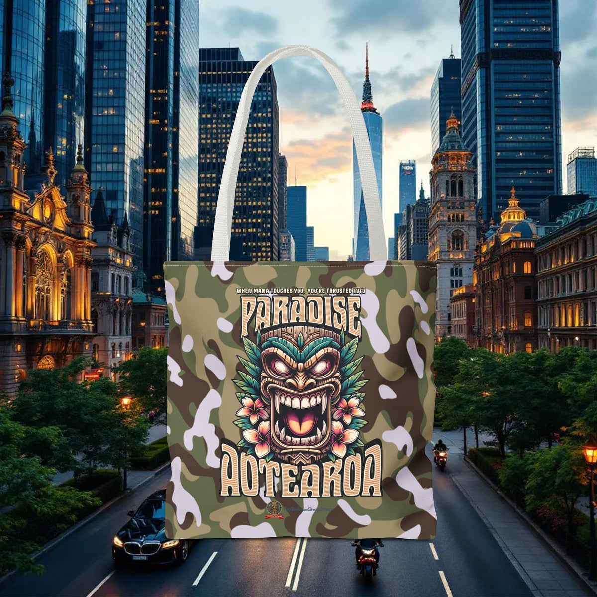 Affirmez votre connexion avec le Mana et le paradis d'Aotearoa. Procurez-vous votre Tote Bag 'Paradise Aotearoa' chez TIKI TOA TRIBE SHOP et laissez l'esprit du Pacifique vous accompagner.