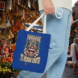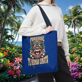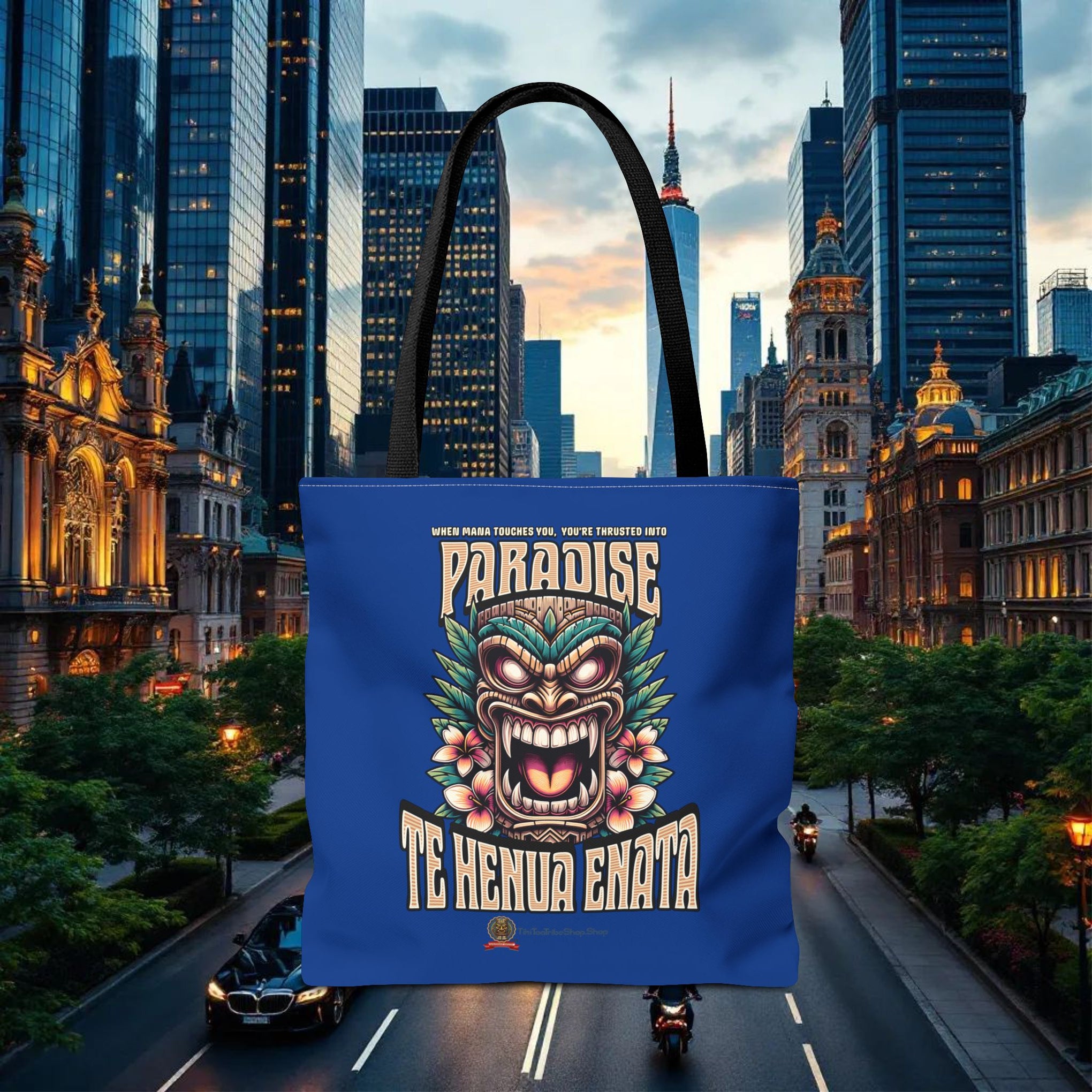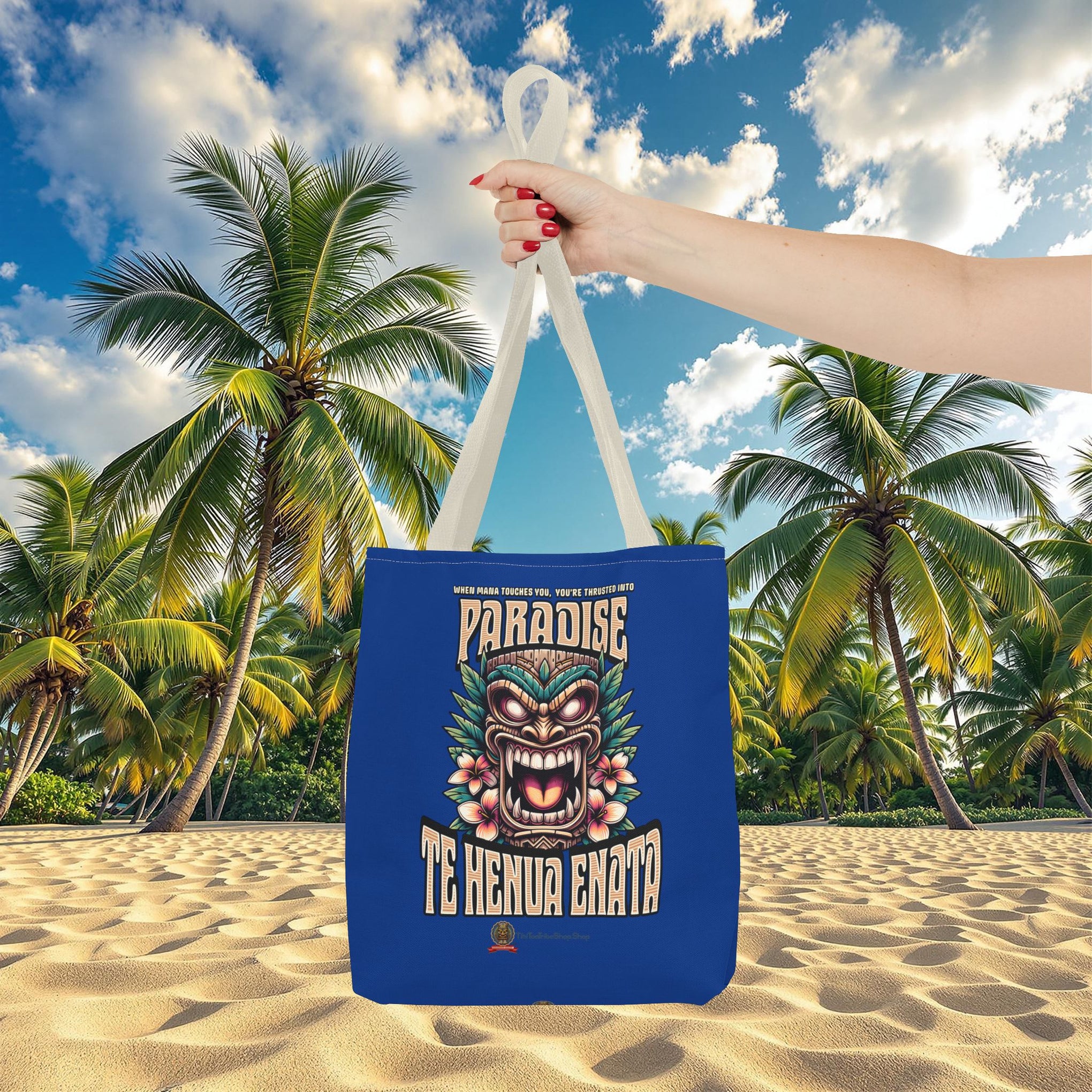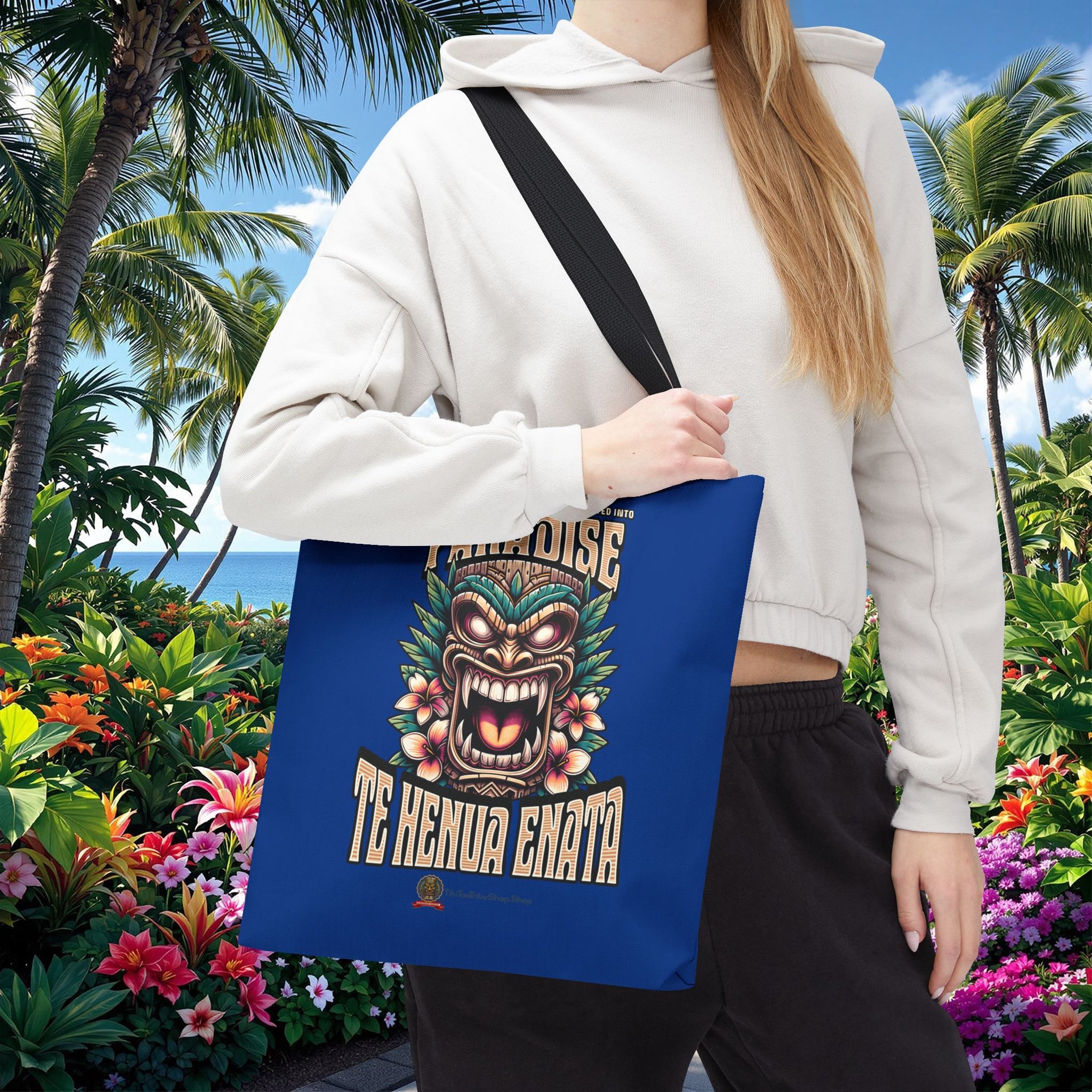 Emportez la beauté profonde et l'esprit des Marquises avec le Tote Bag 'TE HENUA ENATA PARADISE' Bleu Marine de TIKI TOA TRIBE SHOP. Votre paradis personnel, avec une touche d'aventure et de sagesse, vous attend !
