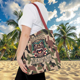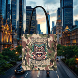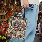 Emportez la beauté sauvage et l'esprit des Marquises avec le Tote Bag 'TE HENUA ENATA PARADISE' Camouflage Forêt de TIKI TOA TRIBE SHOP. Votre paradis personnel, avec une touche de nature et de force, vous attend !