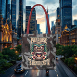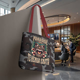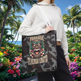 Emportez la beauté profonde et l'esprit des Marquises avec le Tote Bag 'TE HENUA ENATA PARADISE' Camouflage Nuit de TIKI TOA TRIBE SHOP. Votre paradis personnel, avec une touche d'aventure et de mystère, vous attend !