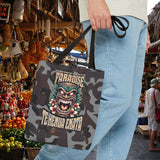 Adoptez la force discrète et l'élégance mystérieuse avec le Tote Bag 'TE HENUA ENATA PARADISE' Camouflage Nuit de TIKI TOA TRIBE SHOP ! Ce sac fourre-tout unique est l'accessoire parfait pour celles et ceux qui désirent allier praticité, un design inspirant et l'esprit authentique des guerriers des Marquises.